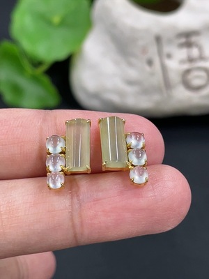 F38493844 Jadeite inlaid earrings pair, 18k gold inlaid, total weight approximately 2.55g