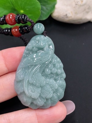 F37391364 Jadeite Peacock Pendant Total Weight Approx. 33.8g (Including Rope Weight)