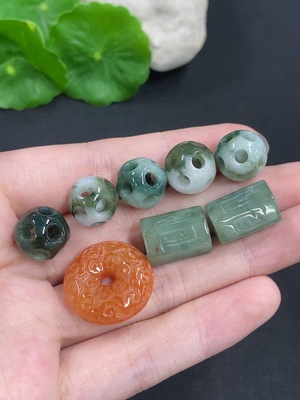 F39663859 Jadeite Barrel Beads + Pendants Sell as a Lot