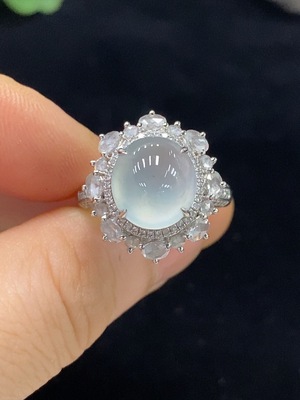 F37460660 Jadeite Cabochon Ring in 18K Gold, Size 14, Total Weight Approx. 4.4g (with Diamond Accents)