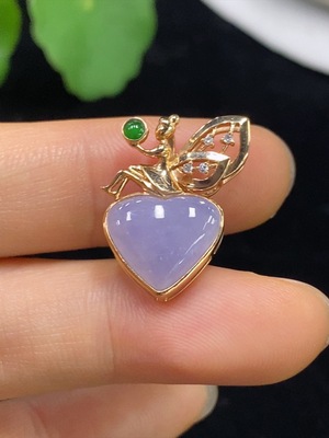 F37363341 Jadeite Heart Inlaid Pendant 18k Non-Diamond Total Weight Approx. 2.73g