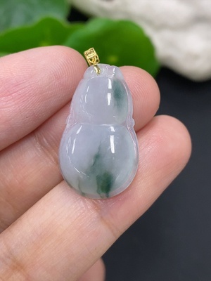 F39644169 Jadeite Gourd Pendant with 18K Gold Clasp, Total Weight Approximately 2.1g