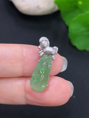 F38513308 Jadeite Ruyi Inlaid Pendant 18K Gold Total Weight Approx. 2.44g