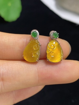 F37345726 Jadeite Earrings Set in 18K Gold (Non-Diamond), Total Weight Approx. 1.73g (Including Ear Studs)