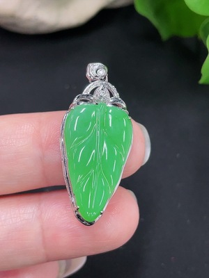 F38511389 Jadeite Leaf Inlaid Pendant 18K Gold Total Weight Approx. 2.9g (with Diamond Accents)