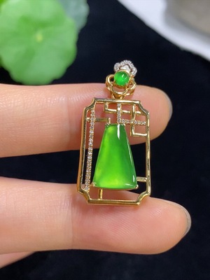 F38497168 Jadeite Plain Pendant with 18k Gold and Diamond Accents, Total Weight Approx. 2.88g