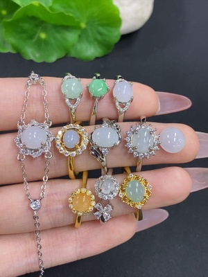 F38509987 Jadeite Inlaid Bracelet with Ring and Cabochon Sell as a Lot Adjustable Size Non-Gold Inlaid