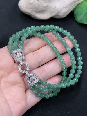 F35190196 Jadeite Bracelet Approx. 4.8mm Beads Non-Gold Setting Total Weight Approx. 7.58g