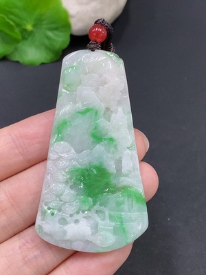 F27172697 Jadeite Landscape Pendant Total Weight Approx. 25.7g (Including Rope Weight)