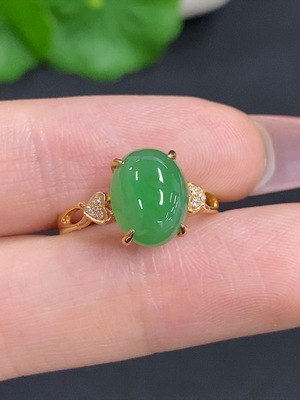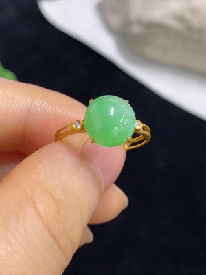 F39576933 Jadeite Cabochon Ring in 18k Gold, Size 14, Total Weight Approx. 1.93g