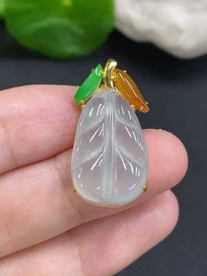 F36216531 Jadeite Leaf Inlaid Pendant 18K Gold Total Weight Approx. 3.6g