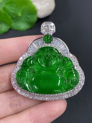 F39549714 Jadeite Pendant Buddha 18K Gold Inlaid with Diamonds Total Weight Approx. 8.88g