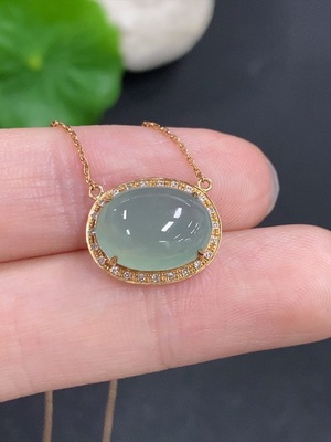 F39646983 Jadeite Cabochon Pendant in 18K Gold with Diamond Accents, Total Weight Approx. 3.2g (Including Chain)