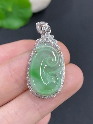 F38516085 Jadeite Ruyi Pendant 18k Gold Total Weight Approx. 2.8g With Diamond Accents