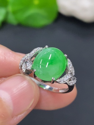 F39609840 Jadeite Cabochon Inlaid Ring 18K Gold Size 11 Total Weight Approx. 3.8g (Non-Diamond)