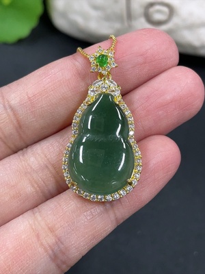 F39629511 Jadeite Gourd Inlaid Pendant Non-Gold Inlaid Total Weight Approx. 7.25g Non-Grade A Matching Stones