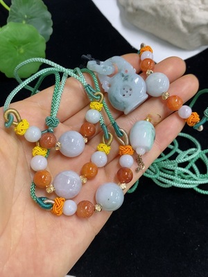 F39667198 Jadeite Ruyi Pendant Total Weight Approx. 8.55g (including rope weight) With Non-Grade A Beads
