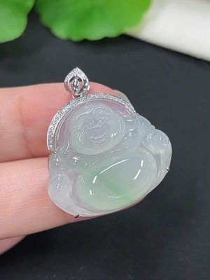 F38517047 Jadeite Buddha Pendant with 18K Gold Clasp, Total Weight Approx. 5.2g, Diamond Accents
