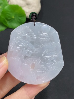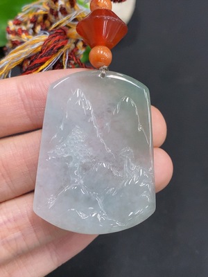 F37393283 Jadeite Landscape Pendant Total Weight Approx. 32.8g With Non-Grade A Beads