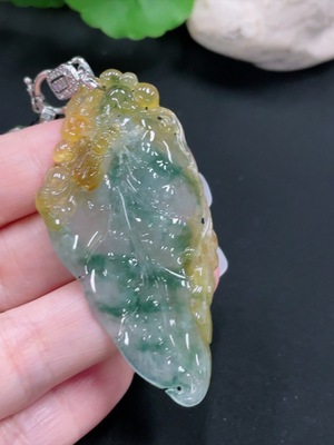 F30499521 Jadeite Pendant Leaf Containing Other Mineral Components Total Weight Approximately 3.63g
