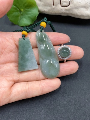 F12376576 Jadeite Plain Pendant + Bean + Ring Non-Gold Setting Adjustable