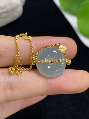 F40735307 Jadeite Bracelet 18k Gold Inlaid with Diamonds Total Weight Approx. 3.69g