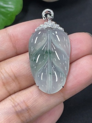 F38535062 Jadeite Pendant Leaf with 18K Gold and Diamond Accents, Total Weight Approx. 4.45g