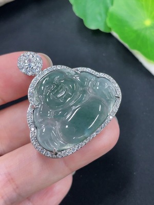 F39625715 Jadeite Buddha Pendant with Inlay Setting, Non-Gold Inlay, Total Weight Approximately 7.35g