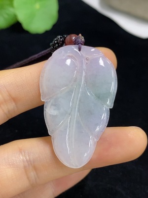 F39666923 Jadeite Leaf Pendant Total Weight Approx. 9.79g (including rope weight)