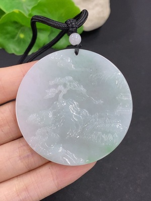 F39611510 Jadeite Landscape Pendant Total Weight Approx. 35.4g (Including Rope Weight)