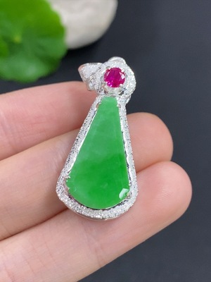 F37395349 Jadeite Fu Gua Pendant, Total Weight Approx. 6.6g