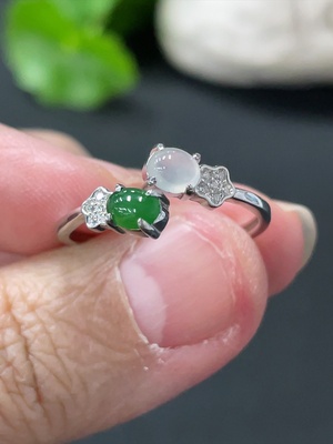 F36319061 Jadeite Cabochon Inlaid Ring Non-Gold Setting Adjustable Size Total Weight Approx. 1.69g