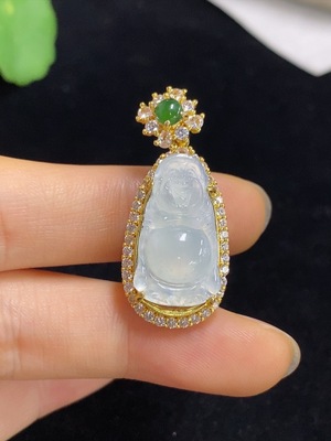F32701235 Jadeite Buddha Pendant with 18K Gold Clasp, Total Weight Approximately 1.9g
