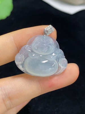 F32701235 Jadeite Buddha Pendant with 18K Gold Clasp, Total Weight Approximately 1.9g