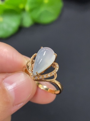 F39554621 Jadeite and Diamond Ring in 18K Gold Size 14 Total Weight Approx. 2.6g