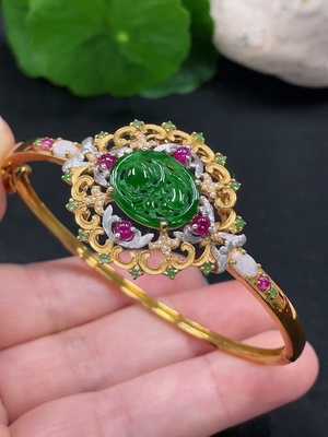 F36282366 Jadeite inlaid bracelet 18K gold Total product weight approx. 14.4g (with non-A beads)