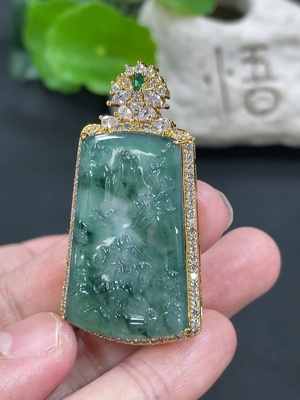 F40708772 Jadeite Landscape Inlaid Pendant Non-Gold Inlaid Product Weight Without Chain Approx. 8g
