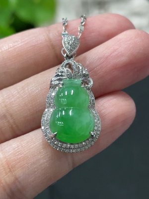 F34018008 Jadeite Gourd Inlaid Pendant with 18k Gold Body and Chain, Accented with Diamonds, Total Weight Approximately 4.8g