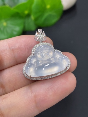 F39553149 Jadeite Buddha Pendant with 18K Gold Setting, Total Weight Approx. 5.1g (Diamond Accents)