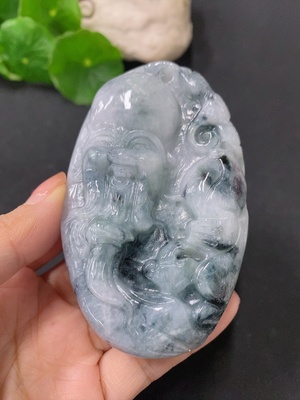 F35141395 Jadeite Longevity God Handheld Carving with a total weight of approximately 227.3g (containing other mineral components)
