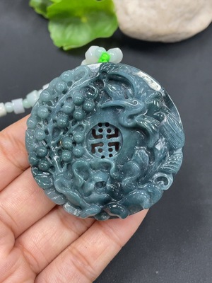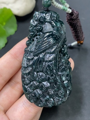 F18022629 Jadeite Flower and Bird Pendant, Total Weight 96.187g