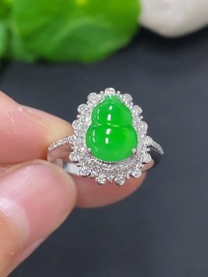 F39609812 Jadeite gourd inlaid ring 18K gold size 11 total weight about 3.4g (with diamond accent)