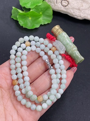 F37403556 Jadeite Peace Knot Pendant Total Weight Approx. 45.77g Including Rope Weight With Non-Grade A Beads