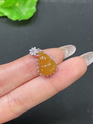 F36208567 Jadeite Pendant Gourd 18K Gold Inlaid No Diamond Total Weight Approx. 2.21g