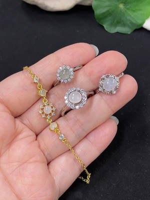 F39587406 Jadeite Inlaid Ring + Bracelet Sell as a Lot (Non-Gold Inlaid) (Adjustable)