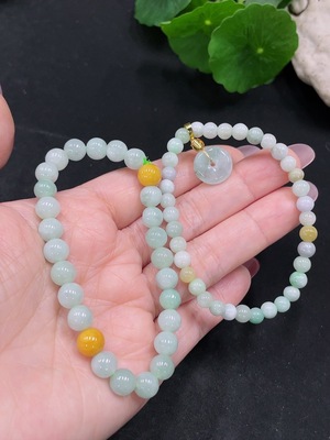 F40686203 Jadeite Beaded Necklace Approx. 5.5mm Total Weight Approx. 34.8g Yellow Beads Color Origin Undetermined