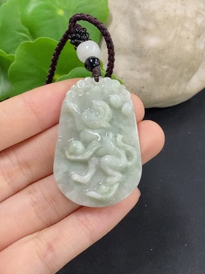 F40699901 Jadeite Auspicious Monkey Pendant with Non-Grade A Beads, Total Weight Approx. 15.07g