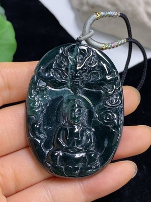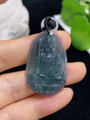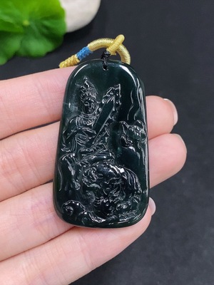 F38527057 Jadeite Manjusri Bodhisattva Pendant, Total Weight Approx. 31.71g (including rope weight)