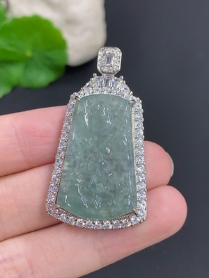 F40708797 Jadeite Landscape Pendant Inlaid Without Gold, Non-Grade A Matching Stones, Item Weight Without Chain Approx. 17.57g