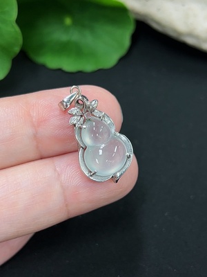 F40693169 Jadeite Gourd Pendant with 18K Gold Total Weight Approx. 2.2g (Set with Diamonds)